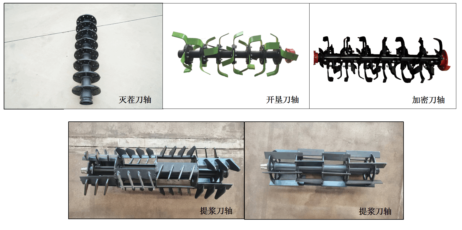 可根據(jù)水旱田及農藝需要配制:滅茬刀軸、開墾刀軸、提漿刀軸、加密刀軸。