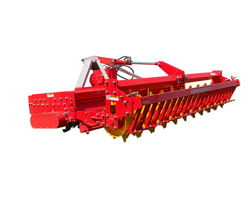 該機(jī)具主要用于旋耕整地作業(yè),農(nóng)藝順序?yàn)樾?旋耕-鎮(zhèn)壓-拖平。專利設(shè)計(jì),合理利用刀軸外端二次動(dòng)力傳輸,帶動(dòng)后刀軸工作,達(dá)到二次粉碎。機(jī)械傳動(dòng)環(huán)節(jié)少,有效節(jié)省了拖拉機(jī)的馬力消耗。一遍頂兩遍的作業(yè)模式,大大提高工作效率。前刀軸和后刀軸連續(xù)作業(yè),拖板鎮(zhèn)壓拖平,提高作業(yè)質(zhì)量。