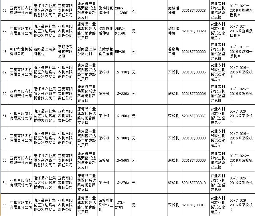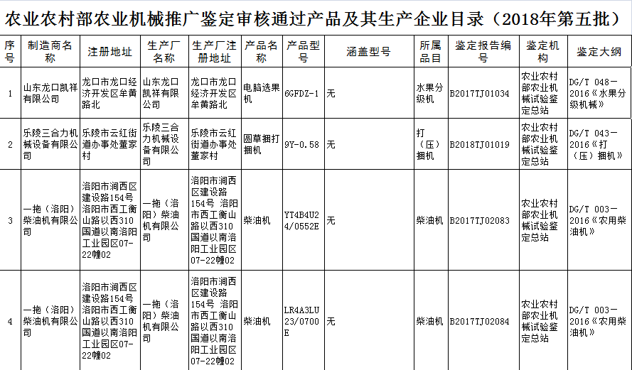 根據(jù)農(nóng)業(yè)部農(nóng)業(yè)機械試驗鑒定總站2018年第五批部級農(nóng)機推廣鑒定結果的公示,9個型號的機型全部通過農(nóng)機鑒定總站的批準。