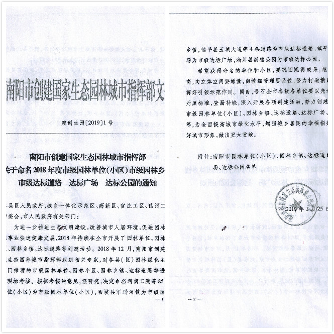 此次我公司喜獲 “南陽市園林式單位”的榮譽稱號,是市級主管部門對我公司優(yōu)美的綠色生態(tài)環(huán)境和園林綠化建設(shè)維護工作的高度肯定。我們會以此為新起點,不斷加強生態(tài)環(huán)境建設(shè)和綠化養(yǎng)護管理工作,使廠區(qū)綠化特色更加顯現(xiàn),廠區(qū)綠化品位更上檔次,打造出更加優(yōu)美的生態(tài)園林廠區(qū)環(huán)境,為“國家綠色工廠”做好基礎(chǔ)。