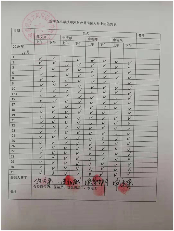 除此之外,我公司聯(lián)合村委會照顧一些特別貧困但有行動能力的老人為村部垃圾清運、水電維修、村落清潔等,并為此購買公益崗位,每月定期給這些公益崗位發(fā)放工資500/個月,以確保他們的正常生活。這一決定從20185月至今已經(jīng)實行了一年半時間,累計發(fā)放公益崗位工資3.1萬元。