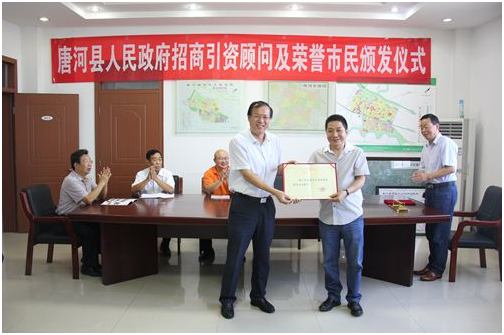 唐河縣人民政府舉行招商引資顧問及 榮譽市民頒發(fā)儀式